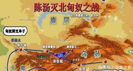 陈汤霸气,一战定乾坤。陈汤和甘延寿率领西域联合军,进攻匈奴郅支单于地老巢郅支城。在强大的西域联军的攻击下,不费吹灰之力,就攻破了郅支城,陈汤斩杀匈奴郅支单于、太子、名王以下1518人。陈汤在没有耗费汉朝朝廷一兵一卒和钱粮的情况下,斩杀匈奴郅支单于,维护了西域的安定,可谓功勋卓著。